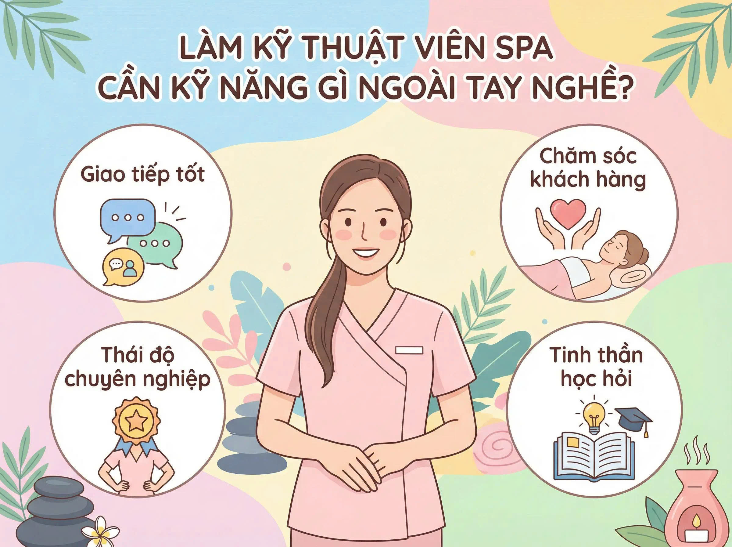 Để trở thành kỹ thuật viên spa giỏi và thành công, tay nghề chỉ là nền tảng. Những yếu tố quyết định sự phát triển lâu dài trong nghề bao gồm: