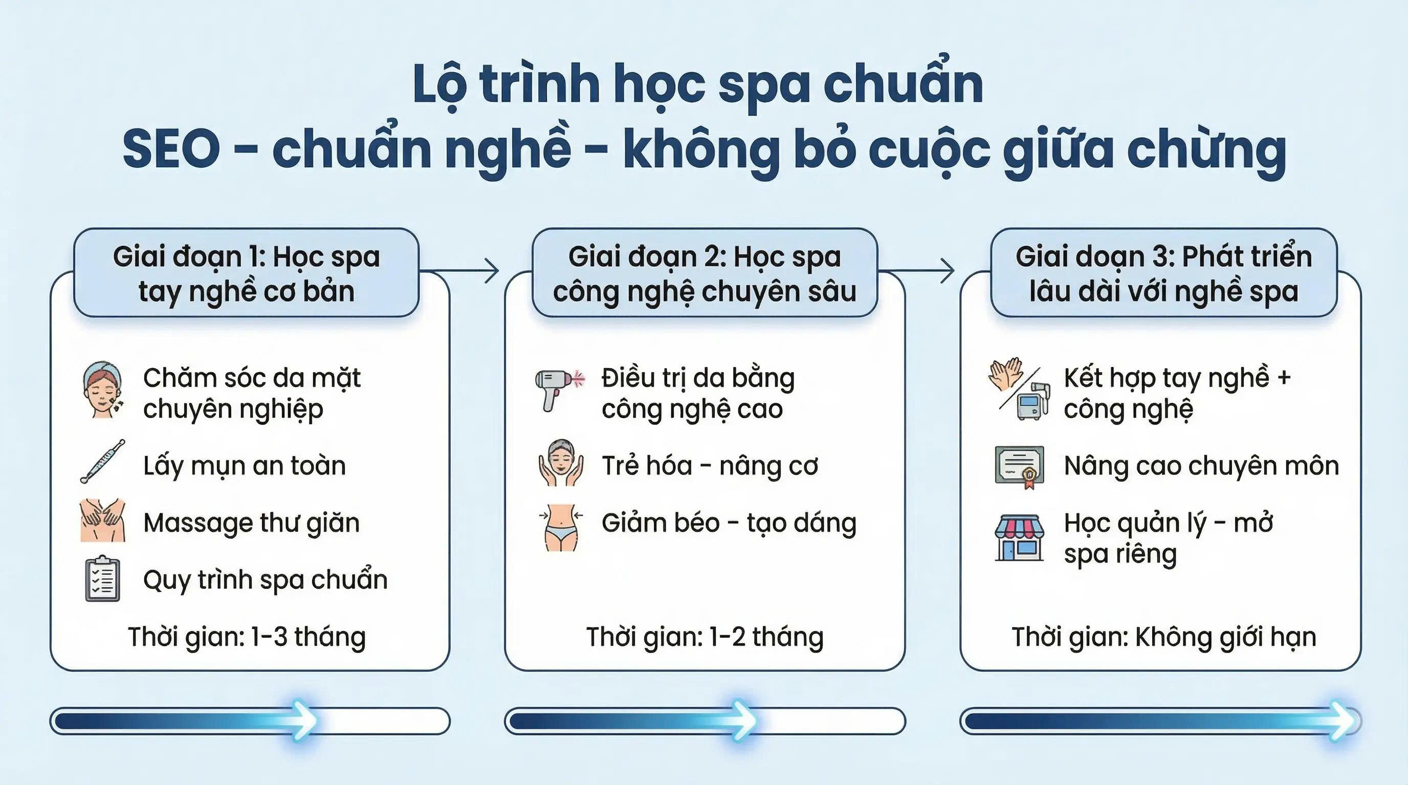 Học đúng từ đầu sẽ giúp bạn không mất tiền oan, không mất phương hướng và không bỏ cuộc sớm trong ngành spa đầy tiềm năng này!!!